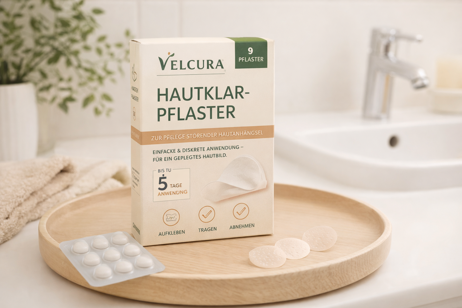 Das Velcura Hautklar-Pflaster wurde für die sanfte und diskrete Pflege störender Hautanhängsel entwickelt.